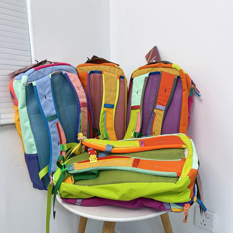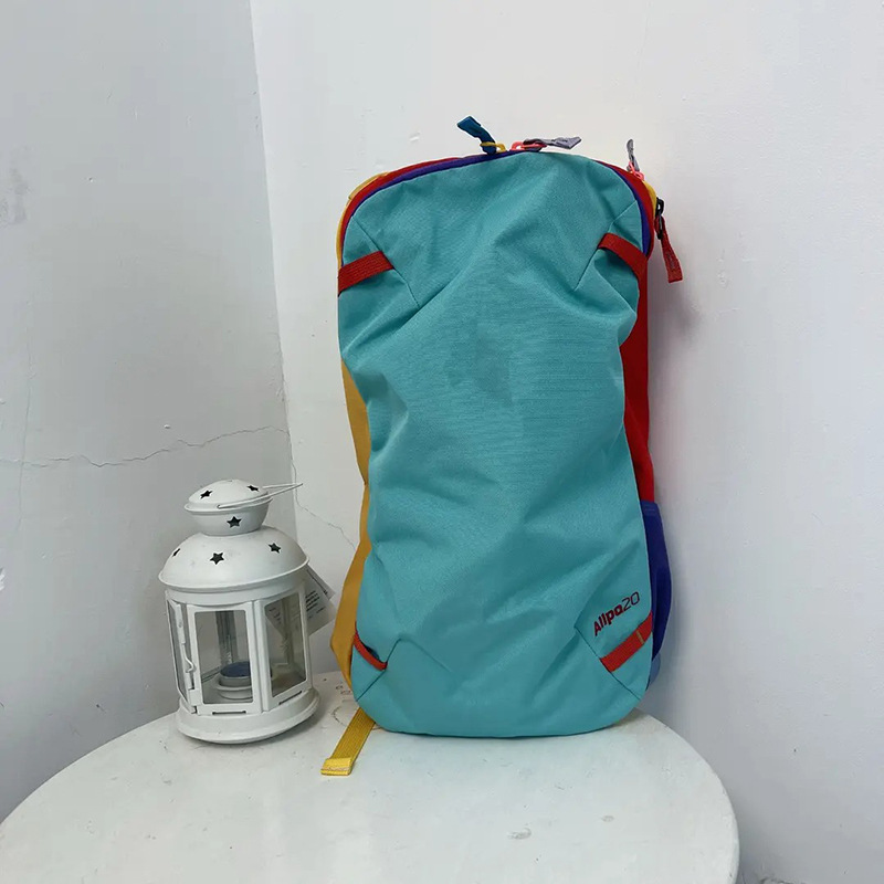 >> 防水弧形肩带双肩包20L2025羊驼旗舰款运动风多巴胺拼色背包批发
