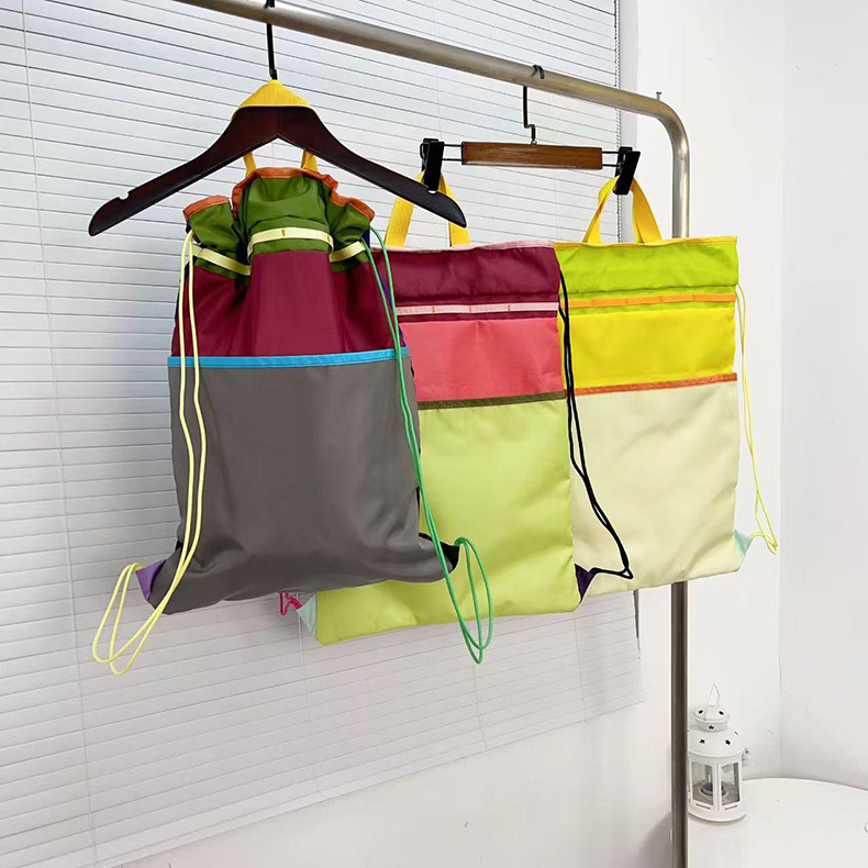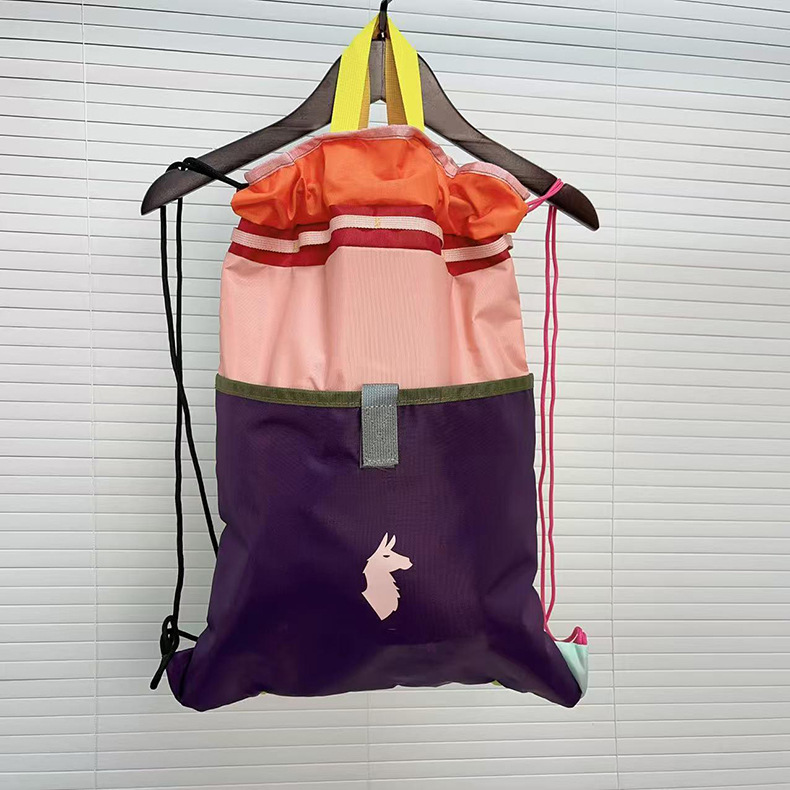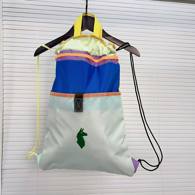 撞色多巴胺羊驼耐用防水牛津布束口袋双肩包便携休闲撞色游泳包