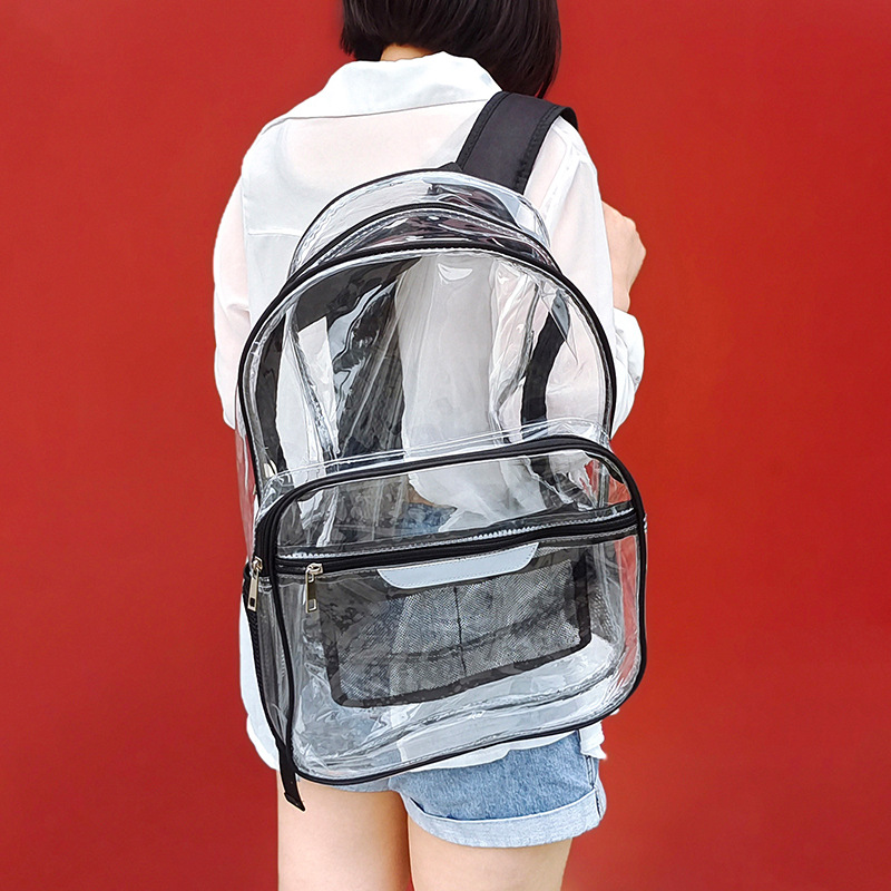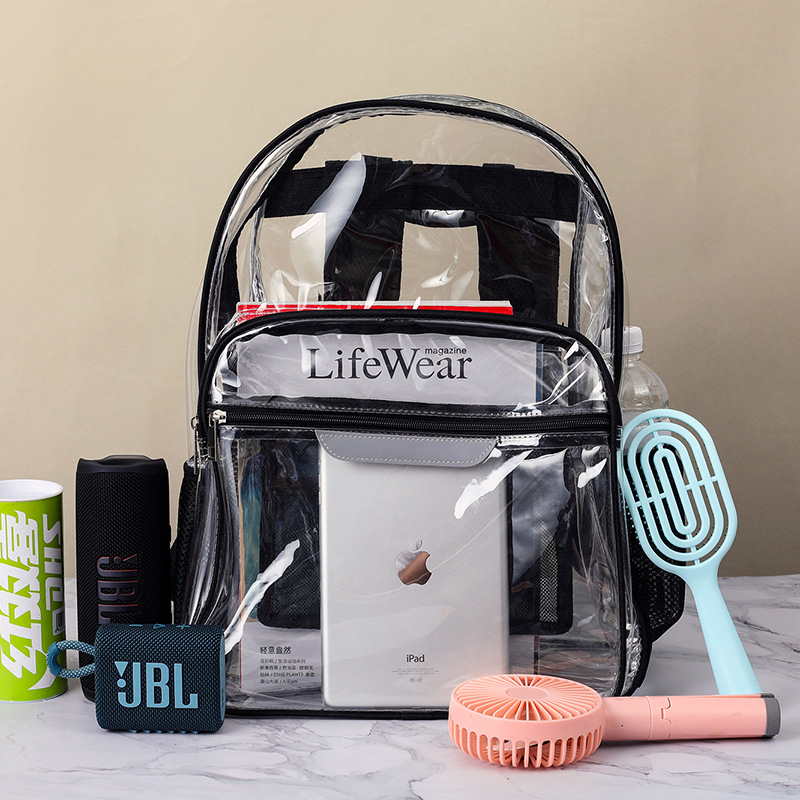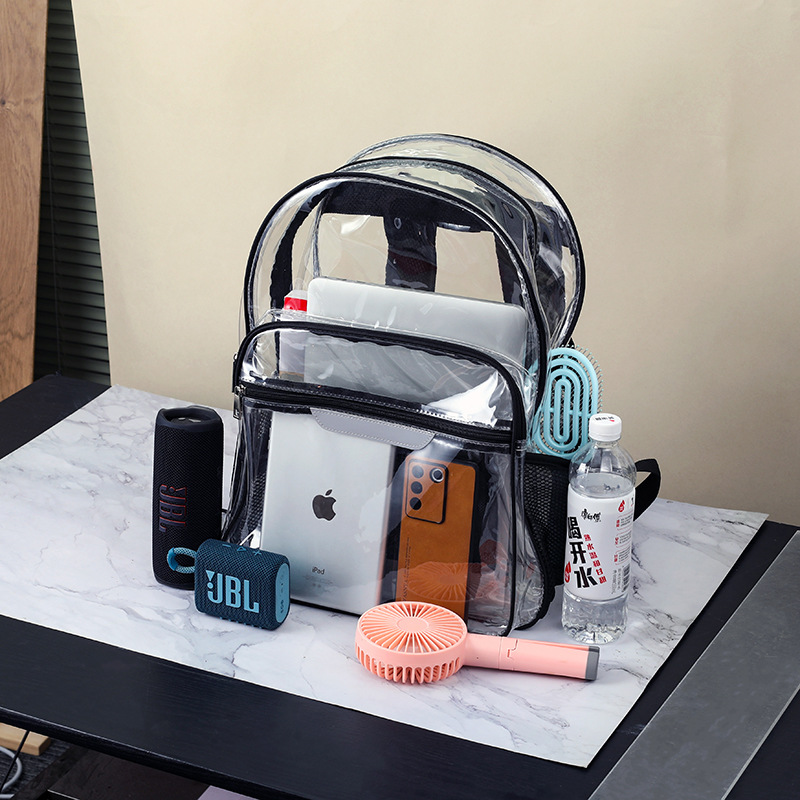 跨境新款学生透明书包休闲大容量便携双肩背包防水PVC收纳批发