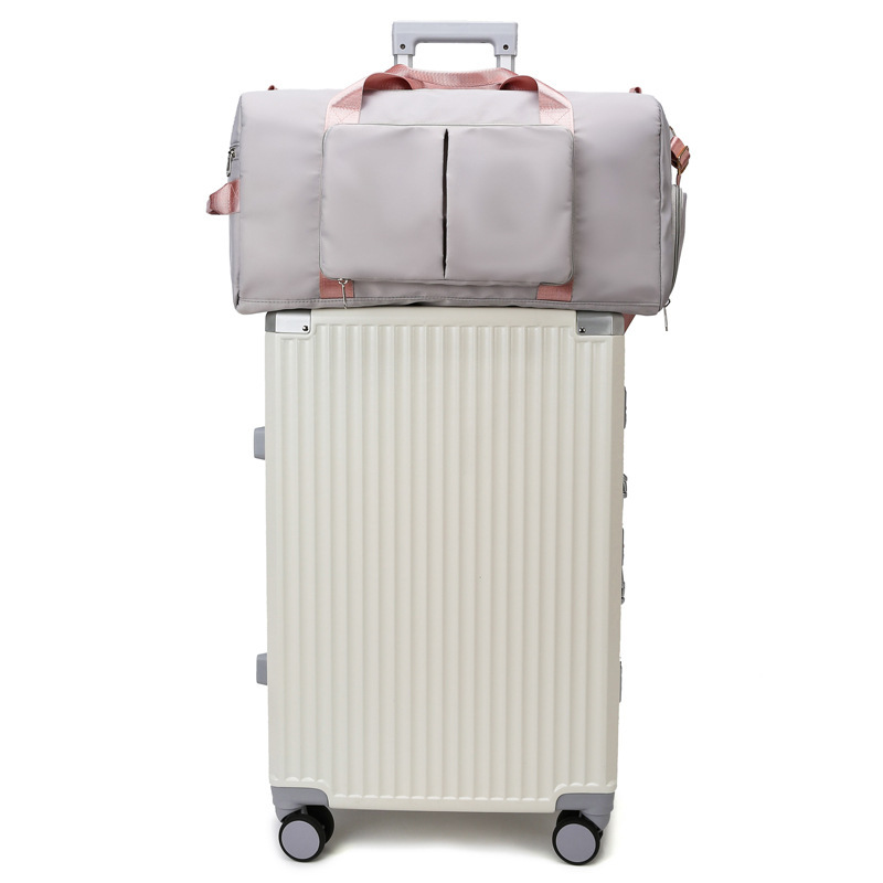 >> 跨境定 制批发干湿分离单肩瑜伽健身包大容量旅行包可折叠扩展包